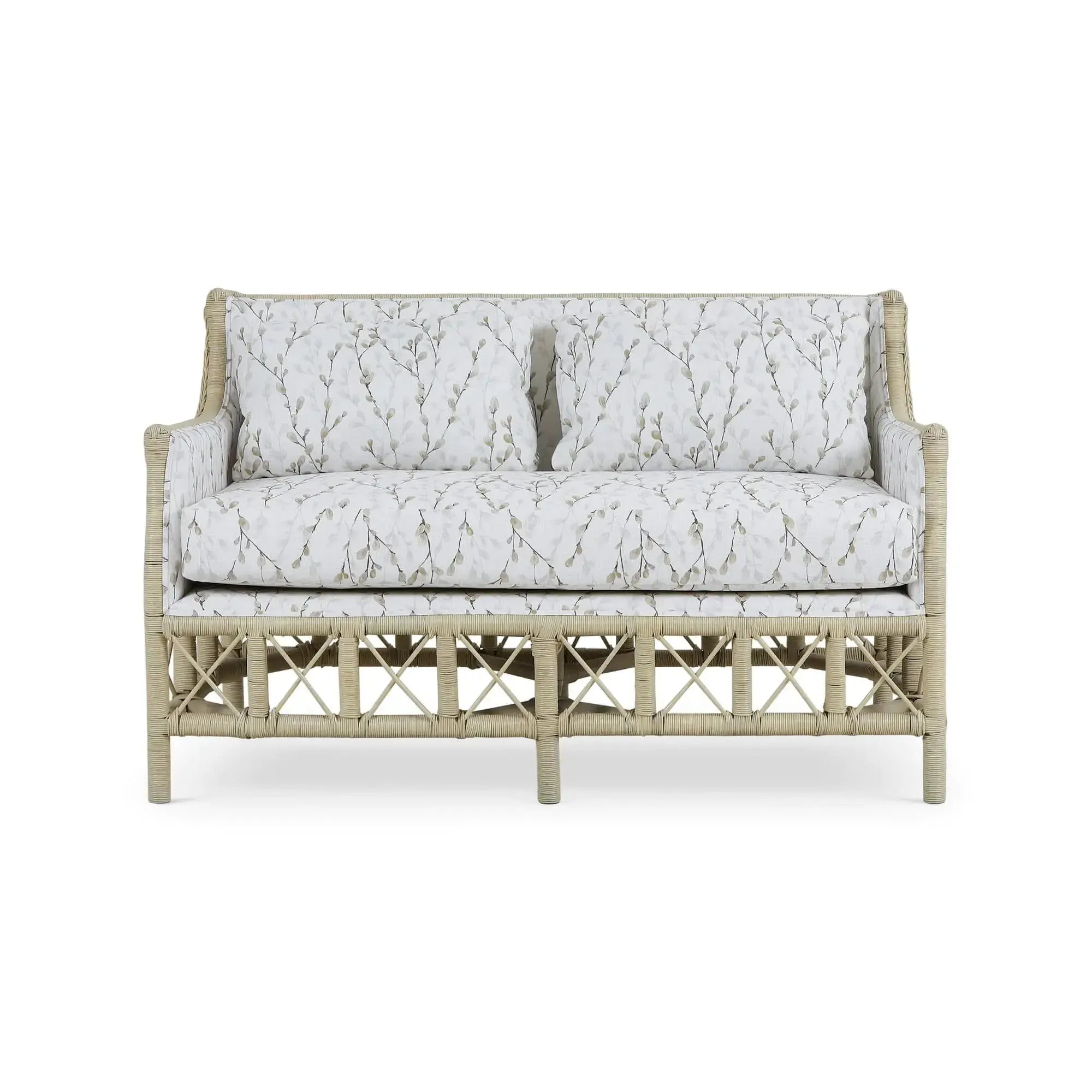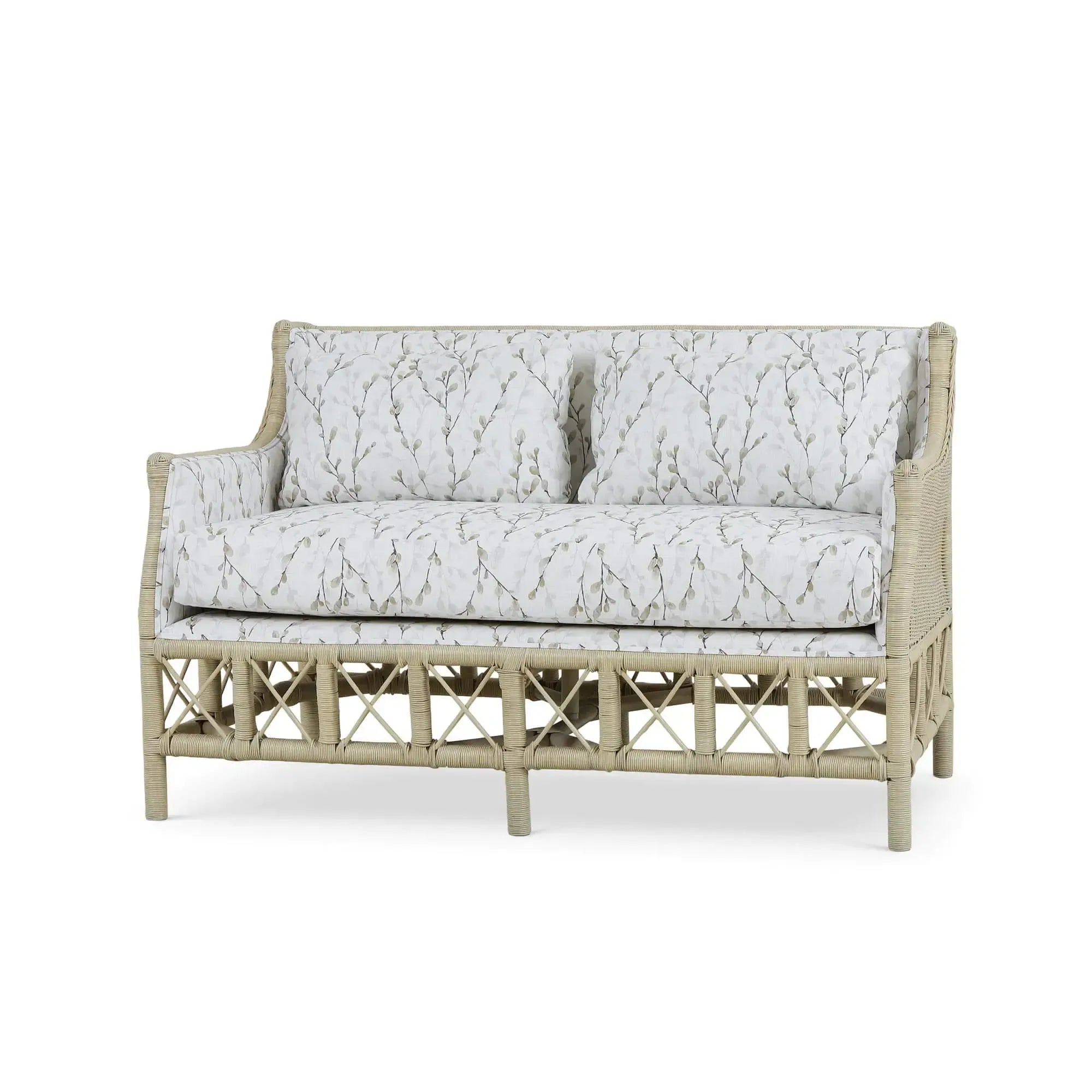 - Rabana Rattan Loveseat in Natural Rattan w/ Whisper Word Fabric Cushion