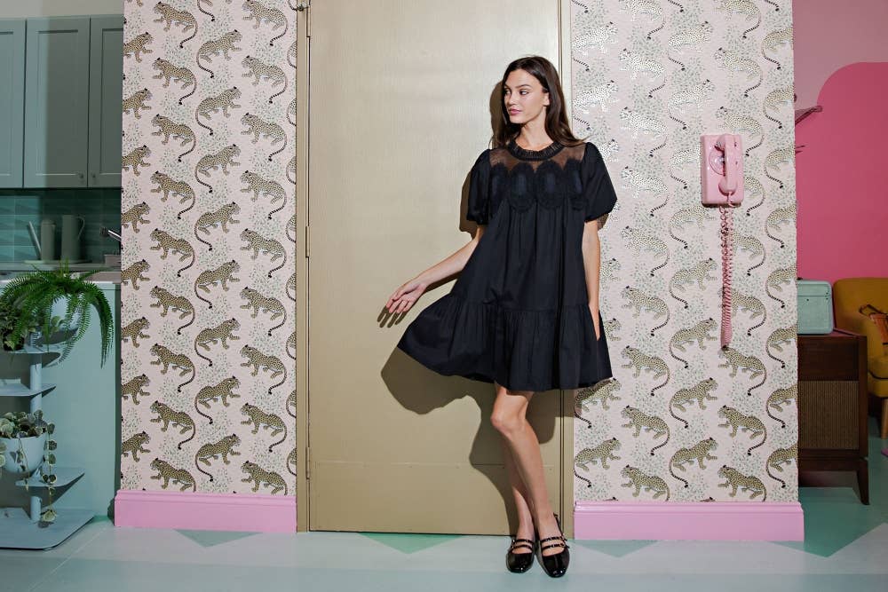 Bubble Sleeve Crochet Lace Babydoll Dress