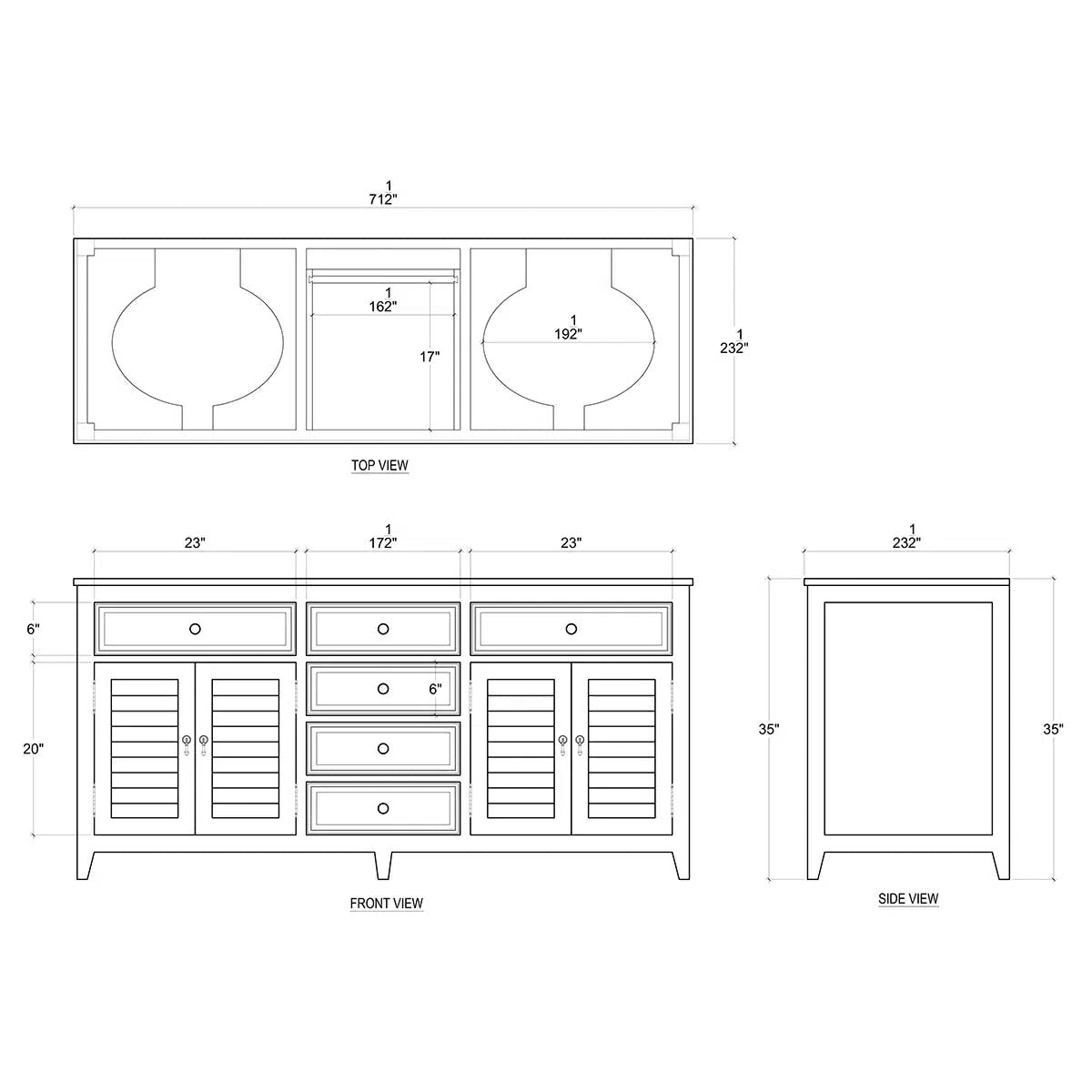 Shutter Double Vanity w/o Marble Top & Sink
