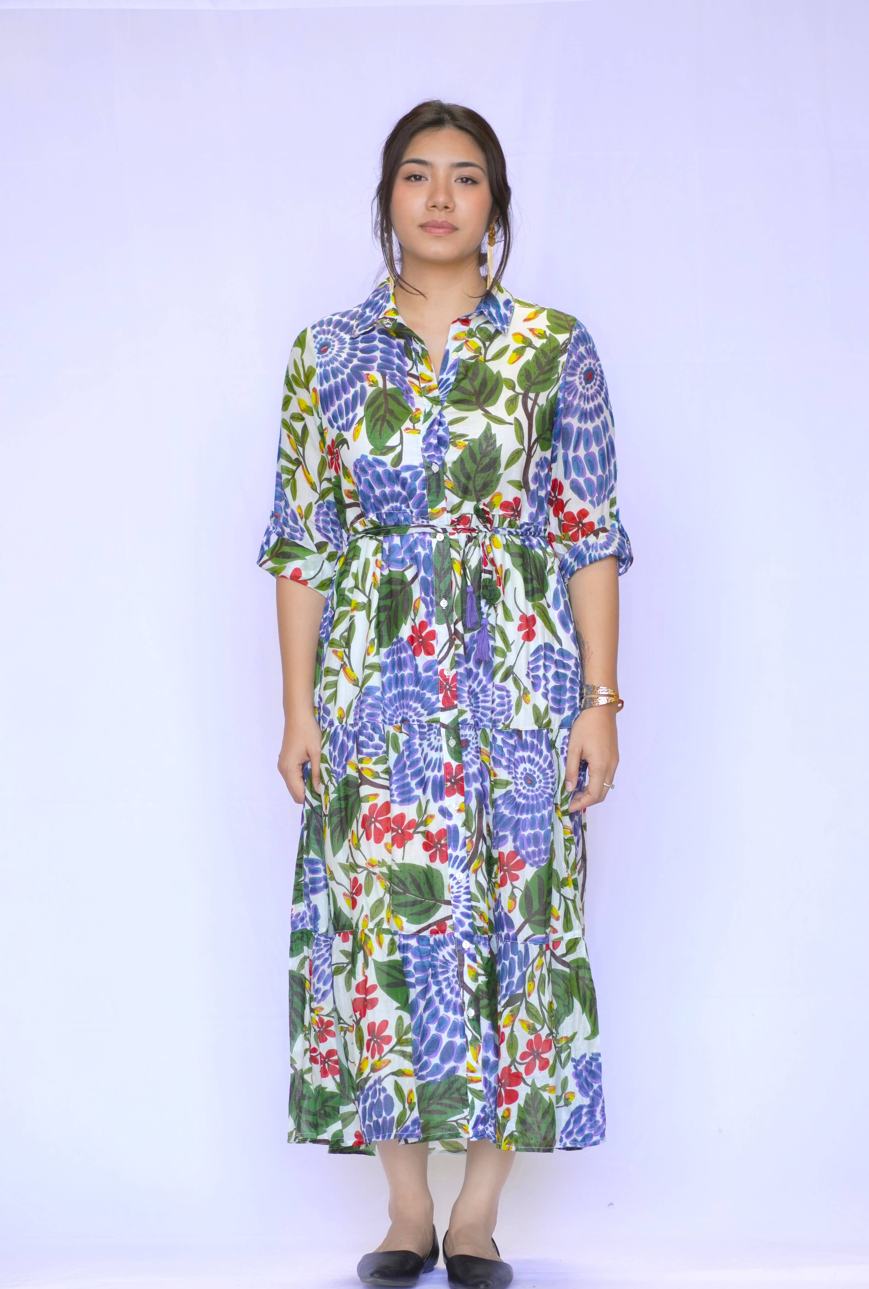 Cotton Tiered Shirt Dress